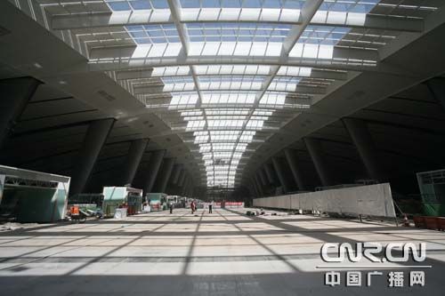 自2005年12月25日開工至今,歷時2年多,北京南站這一設(shè)計使用年限100年、總建筑面積42萬平方米的大型綜合交通樞紐,日前進(jìn)入工程收尾階段,預(yù)計于6月30日竣工,7月中旬完成系統(tǒng)調(diào)試,8月1日正式開通運營。