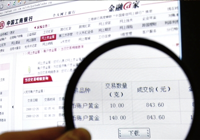 投資者以843.6元每克賣出工行紙 黃金。本報(bào)記者周民攝