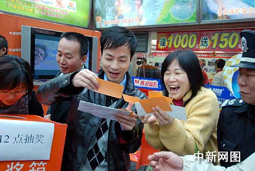 在廣東春節(jié)國內游首場熱賣會上,抽獎時中獎的游客興高采烈。胡銀漢攝