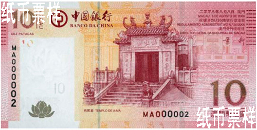 中新網1月5日電 根據澳門特別行政區第20/2008號行政法規,中國銀行獲準發行1000元、500元、100元、50元、20元、10元六種面值澳門元新版鈔票。