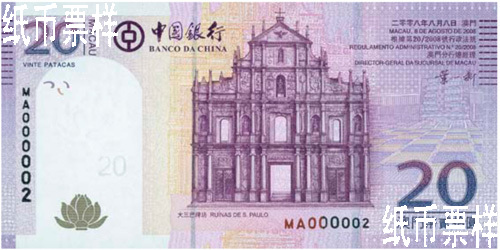 中國銀行澳門元新版鈔票正面主景圖案選自澳門世界文化遺產名錄中的景點,展示澳門幾百年來形成的中西融合的建筑風采,展現了澳門多元共存、和諧交融的文化精髓。