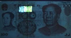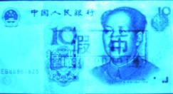 經(jīng)過處理的假鈔紙張的熒光反應