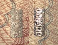 第三種偽造安全線是使用雙層紙張,在紙張夾層中放實物線,線與紙張結(jié)合較差,線表面印刷磁性油墨。