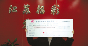 4月2日上午,中獎者劉京(化名)來到江蘇福彩中心領走巨獎。