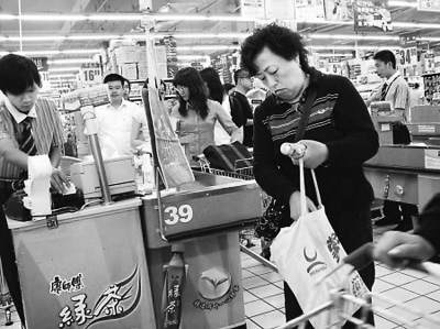 在超市我們發現,和趙大媽一樣,“限塑令”正悄然改變一些市民的購物習慣,拎著環保袋上超市購物漸漸成為一種時尚。
