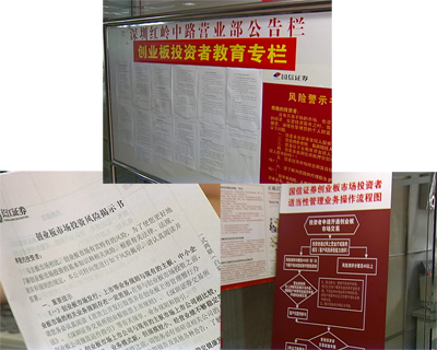 在招商證券公司的這家營業部,記者注意到公司大門外的墻面上,張貼著不少關于創業板的知識介紹、開戶流程等信息,而開戶大廳里人頭攢動。