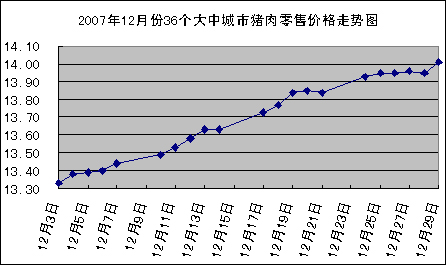 中新網(wǎng)1月2日電 國家發(fā)改委網(wǎng)站發(fā)布消息稱,據(jù)國家發(fā)展改革委價格監(jiān)測中心監(jiān)測,元旦前一周(2007.12.24-2007.12.29,下同)全國36個大中城市豬肉(精瘦肉)集市平均零售價格每500克為13.96元,比上期(2007.12.17-2007.12.21,下同)上漲1.09%。