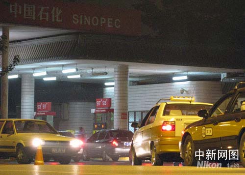 圖為6月19日深夜,北京部分司機獲悉成品油調價消息后,趕在20日凌晨零點前在加油站排起長龍加油。 記者 余瑞冬攝