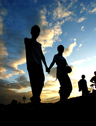 一對情侶在西湖斷橋上漫步。趙小軍 攝