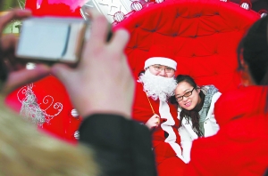 17:30,大望路地鐵站門口。捧著白色泡沫塑料箱子賣花的小販如此“教育”一位男顧客。記者發現,雖然明知道這種插在塑料箱子里的花根本過不了夜就會枯萎,雖然小販們趁節日“坐地起價”,往常10塊一捧的玫瑰如今漲到了50塊,但咬牙跺腳買下圣誕花的男士仍為數不少。