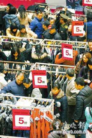 解放碑三日狂購活動(dòng)昨日落幕。相關(guān)百貨商場稱,元旦期間銷售出現(xiàn)不同程度井噴,其中一福建男子兩天時(shí)間花了22萬元買化妝品。