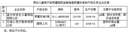 嬰幼兒童裝產品質量國家監督抽查質量較差的產品及其企業名單