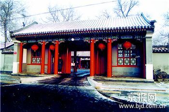 張自忠路23號,舊時的門牌據分析可能是鐵獅子胡同5號,后曾改為地安門東大街23號,在張自忠路的西段路北,坐北朝南,是一座由東、西3個院落組成的宅院,建筑面積1500平方米。街門面南,是面闊三間的府門,府門兩側各有1間倒座南房,應是當年的警衛室和回事房(傳達室)。西院的一進院有正房5間,東、西廂房各5間;二進院有正房5間,東耳房3間,西廂房5間,東廂房1間。東院有南房3間,東房5間,北部為花園,花園內有假山、亭軒等建筑;宅院四周有回廊環繞。當年,孫中山先生住在西院二進院的正房。孫中山先生逝世后,治喪委員會決定在鐵獅子胡同孫中山居室門口懸掛“孫中山先生逝世紀念室”匾。該室為內外套間,室內陳設簡樸。外間西墻上鑲著一長方形漢白玉刻石,上刻“中華民國十四年三月十二日上午九時二十五分孫中山先生在此壽終”,刻石上方懸掛孫中山遺像,遺像右邊鏡框里為《總理遺囑》,左邊鏡框里為《致蘇聯書》,靠墻的條案上放著《建國方略》、《中山全書》等,條案兩側各有一個花架,花架上擺著青松造型盆景。