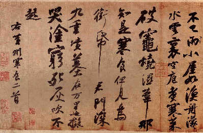 “蘇軾書作分早、中、晚三個(gè)時(shí)期:早年姿媚,中年圓勁,晚年豪放。就筆法看,《春風(fēng)》恣意揮發(fā),氣勢磅礴,飄逸豪放,當(dāng)屬晚年作品。”徐啟雄判斷,《春風(fēng)》應(yīng)為蘇軾在“烏臺詩案”后被貶居惠州、海南,生活窘迫但仍受當(dāng)?shù)厝藷崆榻哟螅栽娫~、書畫回贈(zèng)所為,因此得以在民間保存。