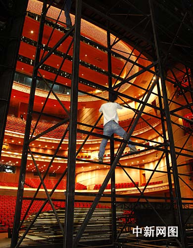 正在現(xiàn)場忙碌著的《圖蘭朵》一劇的舞臺監(jiān)督管建波先生告訴記者:“升降臺架的安裝是本次裝臺過程中比較復(fù)雜和繁重的一個環(huán)節(jié),總高度10米的超長活動范圍需要涉及到許多金屬支架的安裝,任何一個零部件的安裝不善,都可能會導(dǎo)致升降臺架不能正常使用,演出無法順利進行,甚至是讓站在高臺上的演員發(fā)生危險!