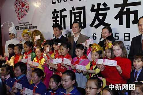 2008北京國際兒童戲劇季主辦方開出了本次戲劇季的首批門票,并贈送到了中外、各民族孩子們的手中。北京兒藝供圖