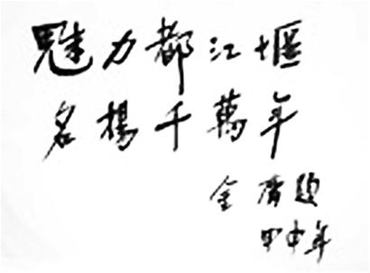 享譽海內外的武俠大師金庸先生與四川頗有淵源,除了在作品中多次將四川名勝寫入筆端外,更于2004年秋天,來到了美麗的天府之國,實現了“暮年入川”的夙愿。2004年9月21日,金庸攜夫人及好友一行飛抵成都,在其后的行程中,金大俠不僅品嘗了地道的川菜、小吃,還在九寨溝、三星堆以及熊貓基地好好地游覽了一番。最讓大俠高興的是,9月26日,他游覽了自己心儀已久的青城山和都江堰。當天,青城派掌門人劉綏濱帶領門下13名高徒為迎接金大俠的到來,展示了青城派的“雙劍合一”和“11人劍陣”。在刀光劍影中,金大俠雙手合十,連喊“佩服”。之后,金庸在青城眾高手的保護下,前往天師洞“坐而論道”。游覽完青城山,金庸更驅車趕到二王廟,俯瞰都江堰。夫人也拿出隨身攜帶的小型DV把都江堰的美景悉數收入“囊”中。據悉,當時江堰市剛當選央視評選的“魅力城市”,作為此活動評委的金大俠曾投了都江堰一票。