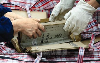 “這些受潮或遭肢解的檔案卷必須要經過除濕、蒸干、消毒、殺蟲、凍干等諸多保護環節。以蒸干為例,失去水分后的檔案會變得像一塊‘硬磚’,只能小心地一層層剝開,每揭一頁夾一層干燥紙來保護。”體態有些發福的張新吃力地蹲在地上,仔細地清點裝有檔案的塑料編織袋,“今天的發掘應該說比較順利,一上午就運走了兩卡車,約有8000多卷,但不少檔案已受潮或碎裂,后期還要仔細修補和保存!睆埿抡f,他們事先準備了1000個編織袋,但到中午時分基本告罄,只得緊急調來1000個支援,“我們樂觀地估計,這次搶救性挖掘能救出五六萬卷文物檔案,基本保住了羌族‘血脈’!”