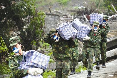 張新是四川省檔案局副局長,著名的檔案專家,他這次專門會同當地檔案部門對北川檔案館進行搶救性發掘。“這次搶救性挖掘難度非常大,必須要掀開‘蓋’在廢墟上的這層樓面。”“通信連、尖刀連、接力連……上!”隨著300多名官兵呈扇形“包圍”廢墟,戰士們從廢墟頂端一直排到地面,挖掘、傳遞、裝箱、登記,每一卷“出土”的檔案都經過了無數雙帶著體溫的手,小心翼翼地傳遞著!罢业搅耍@里有7箱比較完整的檔案!敝形1時許,幾名戰士從兩塊拱立的水泥板下刨出了一箱箱淺藍色檔案柜;焦急等候在一旁的檔案局工作人員趕緊迎上去,面帶喜色。隨著一卷卷記錄羌族政治、文化、經濟等的珍貴檔案“重見天日”,搶救現場的人們臉上露出了如釋重負的笑容。