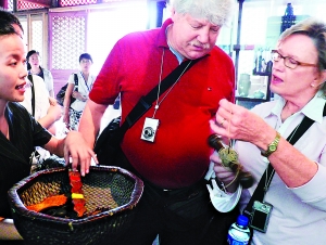 文化展開展首日就迎來不少什剎海地區的居民和外國游客,一對來自美國的夫婦對老物件十分感興趣,不時摸摸這個,試試那個,還坐上太師椅過了一回“主人癮”。記者與他們交談得知,這對美國夫婦是本屆奧運會女子100米仰泳銅牌獲得者瑪格麗特·赫爾策的父母。漢斯·赫爾策先生告訴記者,他們看完女兒的比賽便開始游覽北京,第一站來到什剎海就碰上了如此精彩的文化展覽。“女兒還在備戰本周末的比賽,等比賽結束我們一定會帶她過來。”漢斯·赫爾策說。