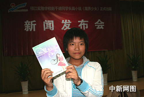 中新網揚州10月17日電(記者崔佳明)10月17日下午,江蘇省揚州市邗江實驗學校舉行新聞發布會,宣布該校初三學生趙千迪的十八萬字長篇小說《魔界少女》第一季終于于今年二月創作完成,并于八月份由中國戲劇出版社正式出版發行。揚州市作家協會主席正式宣布,吸收趙千迪入會,成為該市年齡最小的作家。