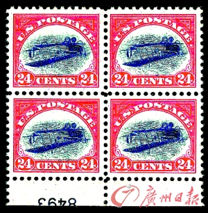 集郵界聞名遐邇的郵票“倒轉(zhuǎn)的珍妮”也在這次拍賣中賣出高價。這枚1918年發(fā)行的航空郵票面值24美分,由于郵票上的飛機圖案被印倒了,當(dāng)時只印制了100枚,因此十分珍貴。紐約州新羅謝爾的郵票經(jīng)銷商哈里·哈根多夫以38.8萬美元拍得這枚郵票。