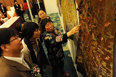 包括清代順治帝明黃地緙織服袍、康熙明黃地織五彩云龍紋妝花緞夾朝袍在內的一批清宮龍袍下月初將于北京北緯秋拍會上拍賣。前天,這些龍袍在北京2008宮廷藝術品論壇上亮相后備受文物界關注。據故宮博物院宮廷織繡研究專家宗鳳英介紹,此次集中亮相的共有18件清宮龍袍,能征集到這樣高檔的拍品,非常難得。