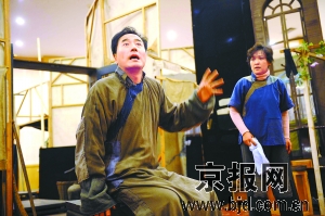 昨天雖然看到的只是該劇第一場,但也能從中感受到《龍須溝》的整體風(fēng)格。散文化的敘事方式,使該劇的故事性比較弱,但人物個(gè)性鮮明,它所展現(xiàn)的市井生活具有濃郁的生活氣息。動(dòng)蕩的大環(huán)境下,小人物的悲慘命運(yùn)在家長里短的敘述中逐一呈現(xiàn),很快就將觀眾帶入規(guī)定情境。雖然只是連排,但看到辛酸處,還是讓不少人都感覺眼眶一熱。人藝藝委會(huì)成員蘇民、鄭榕、朱旭、藍(lán)天野等老藝術(shù)家也前來觀看。藍(lán)天野說,盡管自己50多年前看過老版《龍須溝》,但這次依然被感動(dòng)得三次落淚。