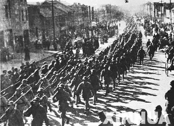 根據(jù)華野的部署,我們9縱正準(zhǔn)備在11月8日向盤踞在新安鎮(zhèn)、阿湖地區(qū)的黃百韜兵團(tuán)發(fā)起進(jìn)攻時,黃百韜根據(jù)徐州“剿總”的命令,急忙向西撤退。我們奮起直追,越過隴海路,西渡沭河,直撲運河。行軍途中,我領(lǐng)著大家唱《追擊歌》:“追上去,追上去,不讓敵人喘氣!追上去,追上去,不讓敵人跑掉!”