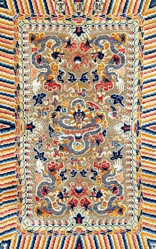 3.毯邊滿飾海水江涯紋,與龍紋相得益彰,寓意著“江山萬代,永不停息”。