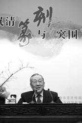 李嵐清同志在作篆刻與《突圍》講座。 劉定傳