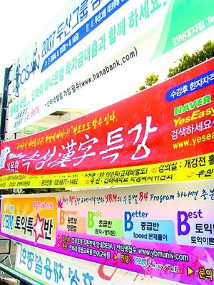 韓國從2000年開始,開設(shè)全國性的“漢字檢定能力考試”,想取得1級的話,至少需會寫2000個(gè)、會讀1500個(gè)漢字。2002年的“漢字能力考試”有40萬人參加,一半是小學(xué)生。到2004年,同樣的考試,參加人數(shù)飆升為104萬,其中有71萬名(68%)是小學(xué)以下的兒童。可見漢字熱的源頭是小學(xué)。