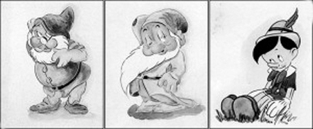 挪威北部一戰(zhàn)爭博物館館長威廉姆·哈克瓦格稱,他是在一個(gè)簽名為希特勒的繪畫作品的背后發(fā)現(xiàn)這些卡通人物像的,他在德國的一個(gè)拍賣會(huì)上買下了那幅希特勒的繪畫作品。他發(fā)現(xiàn)了迪士尼1937年電影《白雪公主》人物“萬事通”和“害羞鬼”的卡通人像圖,圖上有希特勒的簽名,另外一張“匹諾曹”的素描則沒有簽名。“匹諾曹”曾在一部1940年的迪士尼電影中出現(xiàn)。