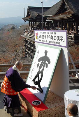 日本的漢字熱潮其實始于去年北京奧運會開幕式上的漢字表演,尤其是活字版的出現令日本人十分驚嘆,并由此引發了一波日本的漢字熱。《朝日新聞》分析稱,隨著老齡化而不斷激增的老年人為了預防老年癡呆癥,開始熱衷于猜漢字詞語。隨著老齡化時代的到來,日本65歲以上老年癡呆癥患者已經超過170萬人。而隨著大學和高中在入學考試中開始重視漢字,青年群體也加入到漢字熱潮中。目前,日本有492所大學和399所高中在入學考試中為漢字檢定考試合格者加分。