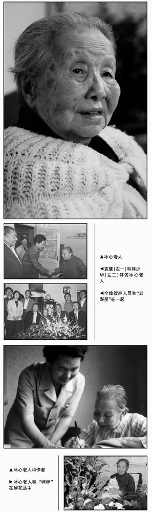 想起1963年春末,北京東城的一次中國(guó)作家協(xié)會(huì)的筆會(huì)上,我曾遠(yuǎn)遠(yuǎn)地看到過這位冰心先生。可那時(shí)候,我還不是作協(xié)會(huì)員。只感覺冰心正微笑著,遠(yuǎn)視著我……