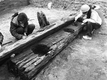 昨(3)日,在現場負責發掘的考古人員張擎帶領下,記者進入了考古現場,映入記者眼簾的是一些橫木和柱子。保存較為完整的一根柱礎底板長3.4米、寬0.45米、厚0.3米,其上有4個圓形柱洞,最高的一根立柱,高1.4米、最大直徑0.3米。這都是些什么呢?“這可是本次發掘的最大發現,超長的豪華漢代廊橋!”張擎激動地說,“從木橋的結構和古河道內出土的遺物推測,這座木橋是漢代典型的建筑,結構與2001年在金沙遺址蘭苑地點發現的漢代木橋完全相同,民間又叫它‘風雨橋’。”