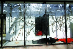 藝術家郝光維權事件不斷升級。昨日下午,郝光開始在自己的799藝術空間櫥窗內做起了行為藝術,以此表示自己的不滿。櫥窗內原本用于展示畫作,從昨日開始,櫥窗內搭起了帳篷,鋪上了棉被,并擺上了畫架,郝光在此進行畫畫、休息,演繹1萬年前生活的狀態。