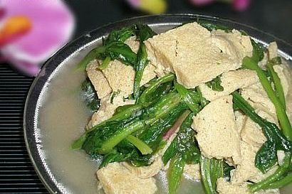 常見的一種吃法是菠菜炒豆腐。但有人卻認為菠菜與豆腐不能一起吃,據說是由于菠菜的草酸含量很高,能與豆腐中的鈣結合形成不溶性的草酸鈣結晶,不能被人體吸收,從而降低了鈣的吸收與利用。也有人對此不以為然,認為損失一點鈣沒有什么了不起的。