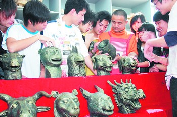 前段時間,法國佳士得拍賣行拍賣圓明園流失文物鼠首和兔首銅像,此事經(jīng)媒體報道后在全國引起巨大反響,也激起了長沙師范學校師生的憤怒。“當時關于十二生肖銅像的話題很熱,我覺得若是仿制出十二生肖銅像,豈不是對學生進行愛國主義教育的好素材?”仿銅十二生肖獸首制作者的指導老師錢正財告訴記者。錢老師將這個想法跟自己的學生們一說,大家都很感興趣。于是他從所教的學生中確定12人,每人負責一個仿銅獸首的制作。