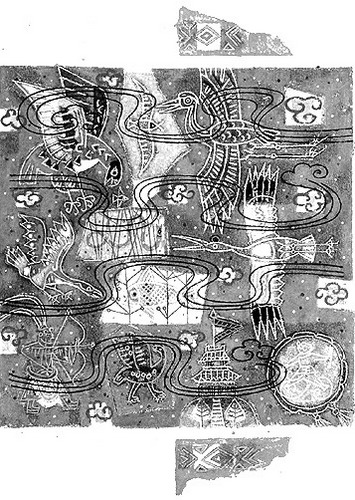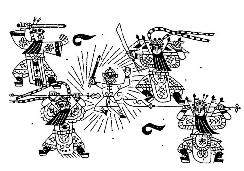 這些,只要看看他的《美猴王》插圖系列,就十分清楚。該系列作于上世紀(jì)50年代末60年代初期,當(dāng)時,在縝密的研究準(zhǔn)備之后,斯科納創(chuàng)作了80幅水墨章首尾插圖和24幅全頁彩色插圖,簡樸的水墨畫順合故事的發(fā)展,而彩色插圖則對文本進行了繪畫藝術(shù)的改編。斯科納為此研究出專門的很復(fù)雜的技巧,采用多種創(chuàng)作方法和顏料,以表現(xiàn)出故事的景象和意義。為了達到最好的藝術(shù)效果,他經(jīng)常把空間劃分為幾個部分,由此反映幻想內(nèi)容與精密藝術(shù)描寫的對比。除此之外,斯科納的其他繪畫元素,如中國的佛像、飛天、天兵天將、孔子、孟子、楚霸王、司馬遷等等,也循此嘗試慢慢展開。幸運的是,本畫展集中展示了茲德涅克·斯科納教授在中國創(chuàng)作的這批藝術(shù)珍品。