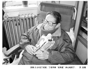 丁聰老人是26日11時(shí)在醫(yī)院飄然遠(yuǎn)行的。丁聰?shù)姆蛉松蚓吭陔娫捴谐领o地證實(shí)了這個(gè)消息:“謝謝你們的關(guān)心,但我們家人尊重丁先生的愿望,不設(shè)靈堂,不舉行一切追悼和紀(jì)念儀式。他只想安安靜靜地離開(kāi)。”