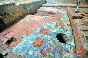正在發掘的廣州南越國宮署遺址工地的南漢地層近日發現了一處大型宮殿遺址,被專家斷定為五代南漢國時期的宮殿遺址。