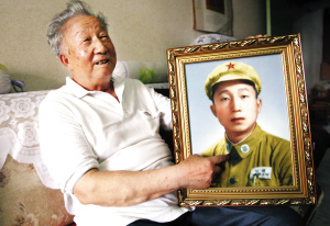 原始的老照片只有一寸,現在還珍藏在相冊里,已經有點破損和銹跡了。墻上的照片是老爺子前些年特地去中國照相館翻新放大的,珍重地掛在墻上,時時能見。