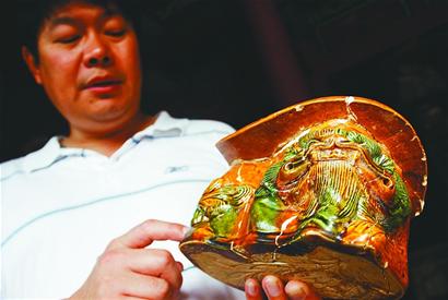 這次發掘的文物有幾件以前在濟南地區很少出土,除了上面說的銅印章,還有兩件宋代陶瓷枕。兩件陶瓷枕中完整的一 件為白釉印花枕,長約20厘米,高10厘米,寬11厘米,兩個枕面一側還有一抹綠色,十分鮮艷。李銘說,這件白釉印花枕所用胎土為高嶺土,文飾清晰,線條 流暢,品相完好,可以說是濟南地區出土的同類器物中最精美的,也體現出宋代人的審美情趣。另一件為三彩獅子牡丹紋枕,出土時殘破,現經整修,基本復原了整 體面貌。這件陶瓷枕的枕面上刻印的是牡丹紋飾,牡丹為紅色,周圍有綠色葉子,顯得很是艷麗。枕身主要的一面為一只堆塑的獅子,形態逼真,富有活力。李銘指 著獅子牡丹紋枕對記者說:“這是一件宋代的三彩器,別看有點殘,但價值比白釉印花枕還要高,因為像這樣做工精美、色彩保存基本完好的三彩陶瓷枕少有出土。 而且這件枕可能是淄博窯的作品,也就是咱們山東自己的窯燒制的,雖然不是著名窯口的產品,但對于山東考古來說具有更高的價值。這樣的陶瓷枕在濟南地區出土 是非常少見的。”