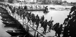 我是從茶峒入秀山的,公路橋被燒掉了,只得走浮橋。浮橋又晃又滑。過河時,我的鋪蓋由馬馭著,誰知橋板太滑,馬失蹄掉江里,鋪蓋也給沖走了。川東南的11月,天天下雨,冷得要命。我從常德出發只領了一件國軍黃呢大衣,根本不頂用。到了酉陽,還是閻紅彥將他自己的一件國軍棉衣讓給我,我才沒凍病。