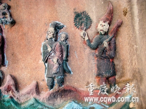 長壽區(qū)但渡鎮(zhèn)未名村龍溪河邊的一塊懸崖峭壁上,雕刻著100個(gè)形形色色的人物,不僅有黑白無常、牛頭馬面等諸多冥界人物,圖畫還繪聲繪色地展示著,死去的人們魂魄過奈何橋、做惡者上刀山、下火海遭受種種酷刑的場(chǎng)景。