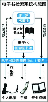 網(wǎng)絡(luò)收費圖書檢索的構(gòu)想源自長尾真館長發(fā)表于2008年4月的一項個人設(shè)想,該設(shè)想最大的亮點便是設(shè)立非盈利的第三方機構(gòu)“電子出版物流通中心”,全面負責與作家的作品網(wǎng)絡(luò)發(fā)布有關(guān)的著作權(quán)問題。國會圖書館將藏書的電子數(shù)據(jù)無償提供給“電子出版物流通中心”,由該中心以收費方式發(fā)送給使用者,隨后將征收到的電子書存取費分配給著作權(quán)人。據(jù)悉,該中心的功能非常近似于眼下“日本音樂著作權(quán)協(xié)會”受詞曲作者委托,向電視臺等征收著作權(quán)使用費。