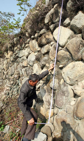 據(jù)介紹,桃園古溪村目前有1500余人,大都姓林,是古堡主人的后裔,“石堡建于明朝中期,有400多年歷史了。”74歲的林公開老人告訴記者,400多年前,桃園林氏先祖元佑公從水頭遷來東田桃園古溪,看到這里風(fēng)景優(yōu)美,就決定在這里定居。 “修建石堡的是元佑公的二兒子林管。”林公開老人說,林管別名“經(jīng)山”,明朝時(shí)期沿海倭寇猖獗,廣有資財(cái)?shù)牧止芘麓迩f毀于倭寇之手,就花費(fèi)家產(chǎn),經(jīng)過數(shù)年的時(shí)間終于建成了一棟遠(yuǎn)近聞名的石堡。 石堡建成后不久,就有倭寇入侵東田,當(dāng)?shù)厝迦丝谥挥?00余人,包括鄰村的數(shù)百名百姓全部躲進(jìn)石堡避禍,“里面有糧食,又有水井。”倭寇圍困數(shù)日,使用火攻不但久攻不下,還因?yàn)楸?nèi)百姓用長矛弓箭反擊,自己反而死傷了不少,倭寇無奈只好退兵。 66歲的林凱老人告訴記者,石堡不但成功抵御了倭寇的進(jìn)攻,在歷史上還多次防御了土匪,真正起到了保家護(hù)鄉(xiāng)的作用。 考古專家劉志成告訴記者,古堡抗倭的說法應(yīng)該可信度還比較高,明代東田曾出了一個(gè)著名的抗倭英雄歐陽深將軍,曾多次在東田、英都一帶與倭寇血戰(zhàn),而當(dāng)時(shí)整個(gè)泉州乃至東南沿海都是“倭禍”重災(zāi)區(qū)。