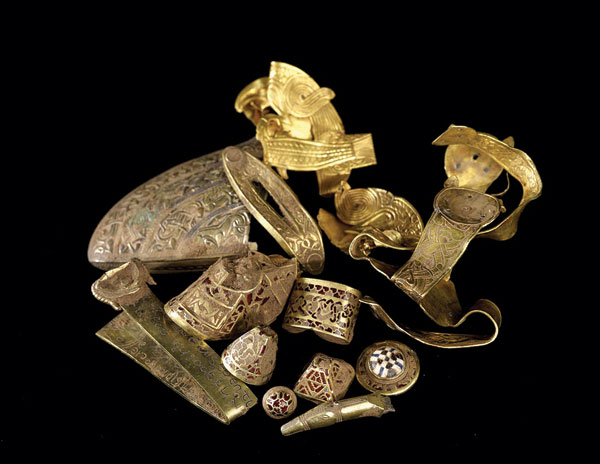 此次出土的史前文物多與戰爭相關,如頭盔的碎片、嵌有石榴石的黃金劍柄等。考古學家表示,這些文物很可能是從某位國王手中繳獲的戰利品。史詩《貝奧武甫》就曾提及在盎格魯撒克遜時期國王與貴族之間經常發生戰爭,使得不列顛群島與歐洲的其余部分相隔開來。但此次發現的寶藏顯示,英國并未像之前記載的那般,切斷了與其他地區間的發展脈絡。諸如黃金劍柄上的石榴石就很可能源自斯里蘭卡等地,這表示英國在當時仍存在著某種形式的長途貿易。