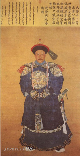 關(guān)于紫光閣功臣像,據(jù)北京故宮博物院宮廷繪畫家聶崇正先生考證,為“平定西域準(zhǔn)回部”前后功臣各五十(前五十幅為乾隆御題。)“平定大小金川”前后功臣各五十。前五十幅為乾隆御題!捌蕉ㄅ_灣”五十功臣!捌蕉ɡ獱柨Α惫Τ既?傆嫸侔耸。目前知道存世僅二十幅。除少數(shù)幾幅私人收藏外,大多數(shù)為世界各地公私博物館收藏,F(xiàn)在知道的是: